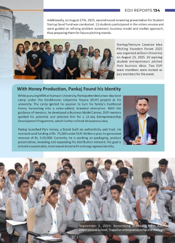 The Devbhoomi Udyamita Yojana (DUY) launched in September 2023 by the Department thus preparing them for future pitching rounds.