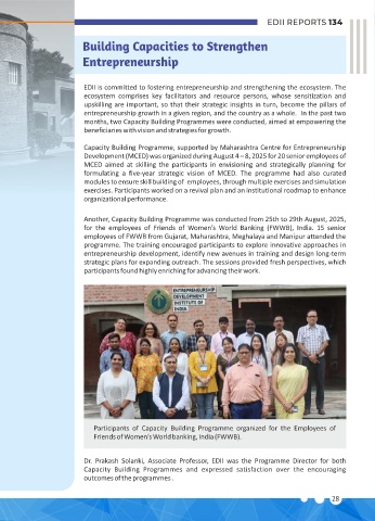 entrepreneurship development, identify new avenues in training and design long-term Kendras Kendras, EDII initiated trainings on soft skills, namely - ‘Financial