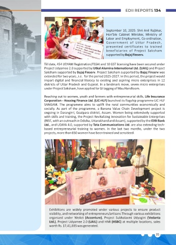 like  mushroom  cultivation,  upcycled  textile  products,  sanitary  napkin  production,   Till date, 454 UDYAM Registration/FSSAI and 10 GST licensing have been secured under