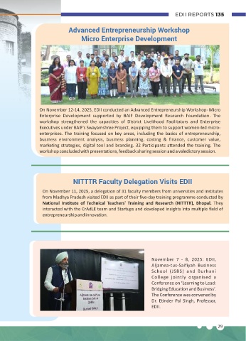 On November 12-14, 2025, EDII conducted an Advanced Entrepreneurship Workshop- Micro