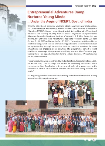 months, two Entrepreneurial Adventure Camps were conducted at the EDII from