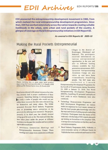 glimpse of coverage on Rural Entrepreneurship initiatives in EDII Report 82.