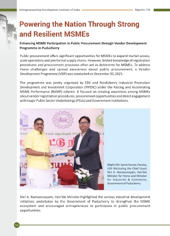 The programme was jointly organized by EDII and Pondicherry Industrial Promotion the need to strengthen this sector and went on to appreciate the role of institutions like EDII.
