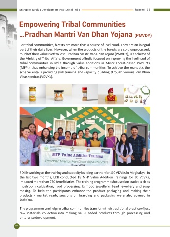 much of their value is often lost. Pradhan Mantri Van Dhan Yojana (PMVDY), is a scheme of EDII, in collaboration with District Skill Development-cum-Employment Office (DSDEO),