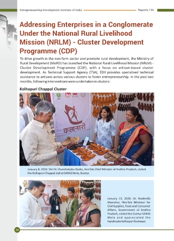 assistance to artisans across various clusters to foster entrepreneurship. In the past two convergence opportunities for