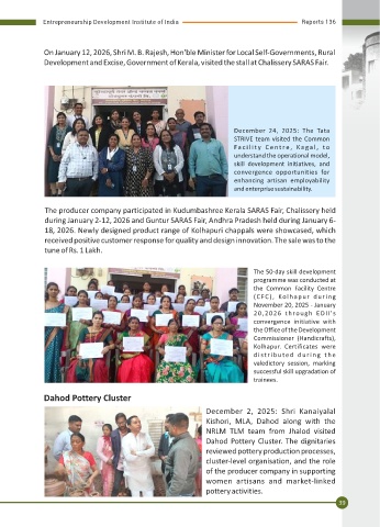 assistance to artisans across various clusters to foster entrepreneurship. In the past two convergence opportunities for
