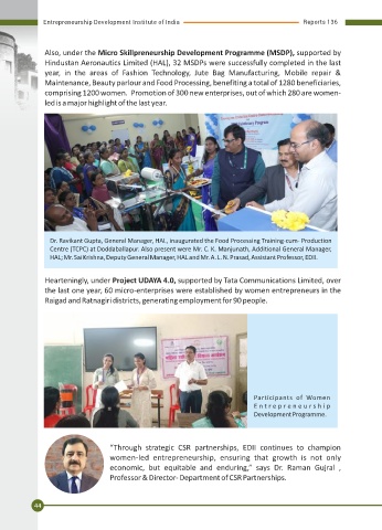 Dr. Ravikant Gupta, General Manager, HAL, inaugurated the Food Processing Training-cum- Production brighter days ahead, with entrepreneurship ecosystem also supporting women as
