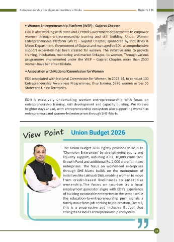 Also, under the Micro Skillpreneurship Development Programme (MSDP), supported by • Women Entrepreneurship Platform (WEP) - Gujarat Chapter