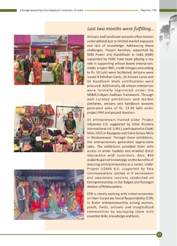 to Rs. 50 Lakh were facilitated. Artisans were