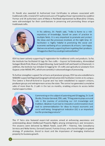 Dr. Pandit also awarded GI Authorized User Certificates to artisans associated with Hon’ble Shri Harsh Sanghavi, Deputy Chief Minister, Gujarat State, sent his