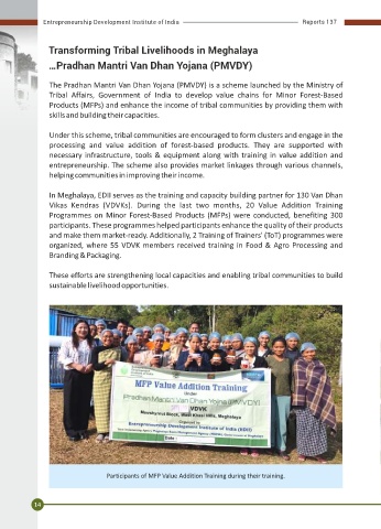 In Meghalaya, EDII serves as the training and capacity building partner for 130 Van Dhan training 453 scientists and technologists. The programme aimed to create a holistic learning