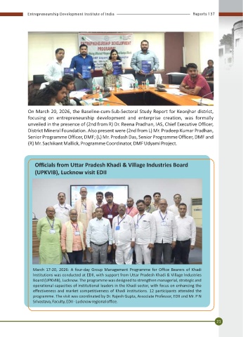 Magistrate, Keonjhar; (2nd from R) Dr. Reena Institutions was conducted at EDII, with support from Uttar Pradesh Khadi & Village Industries