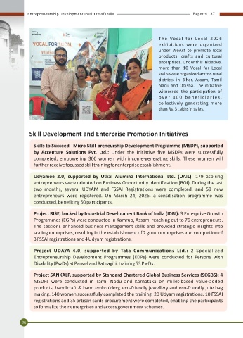 products, crafts and cultural technology) were awarded training completion certificates. Also, 200 Udyam registration