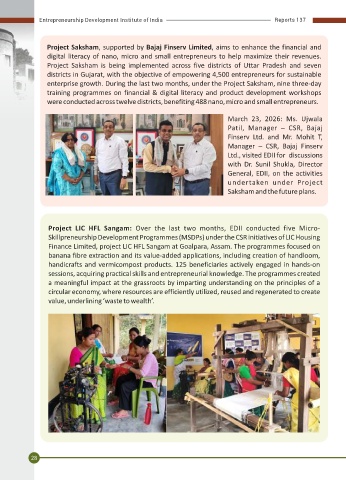 Project Saksham, supported by Bajaj Finserv Limited, aims to enhance the financial and Driving Growth, Transformation and Livelihood Creation
