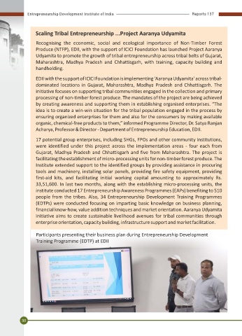 EDII with the support of ICICI Foundation is implementing 'Aaranya Udyamita' across tribal- empowering people of the state with the knowledge, skills and competencies required to