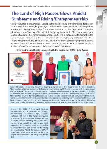 Administra on of Union Territory of Ladakh and implemented by EDII, gets honoured with the pres gious