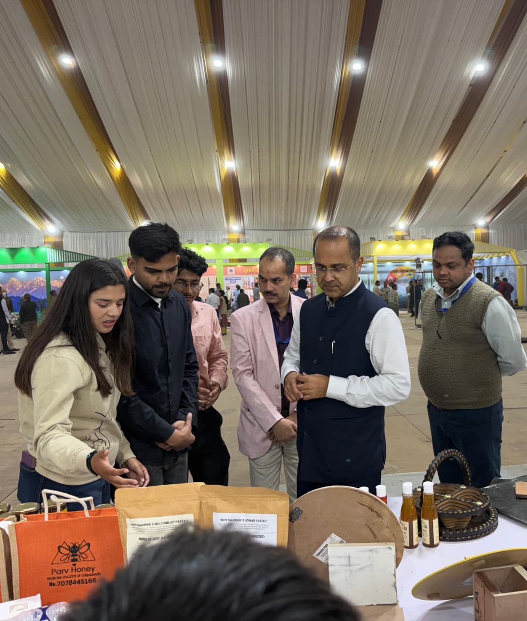 Shri Shailesh Bagauli, IAS, Secretary to Hon’ble Chief Minister, Government of Uttarakhand, appreciated DUY stall and commended students efforts. He complimented the blend of tradition, innovation and sustainability demonstrated through the display of products. The products stood for rigorous mentorship, skill development and continuous support provided under the DUY.