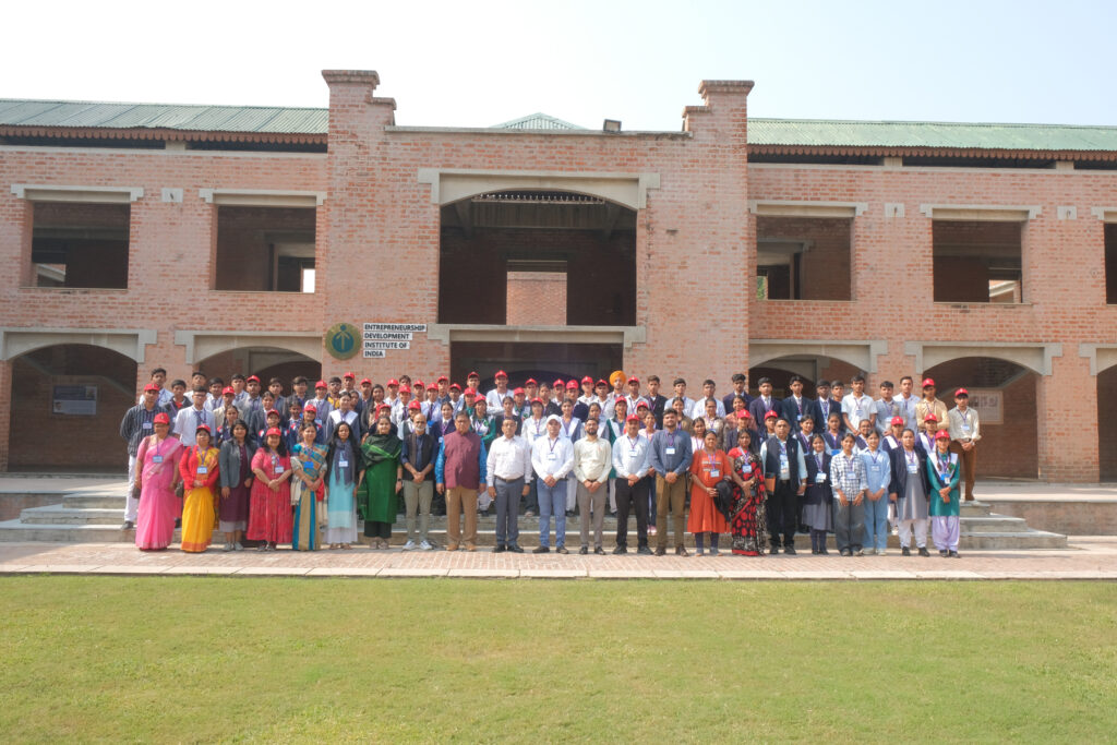 With the objective of beckoning youths to adopt an entrepreneurial disposition, EDII, in collaboration with Pandit Sunderlal Sharma Central Institute of Vocational Education (PSSCIVE), Bhopal – a constituent unit of National Council of Educational Research and Training (NCERT), Govt of India – organized Entrepreneurship Adventure Camps for Vocational Students of classes 11th & 12th. During last two months, two Entrepreneurial Adventure Camps were conducted at the EDII from October 6 – 11, 2025 and November 24 – 29, 2025. 154 students participated in the residential camp, which focused on introducing participants to the fundamentals of entrepreneurship through interactive sessions, creative exercises, business simulations and engaging group activities. The programmes aimed to build confidence, encourage idea generation and help them to identify market gap, turning those into opportunities for starting suitable business. 27 teachers also participated as observers.