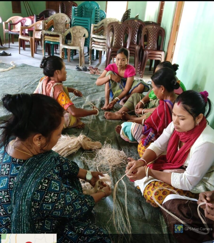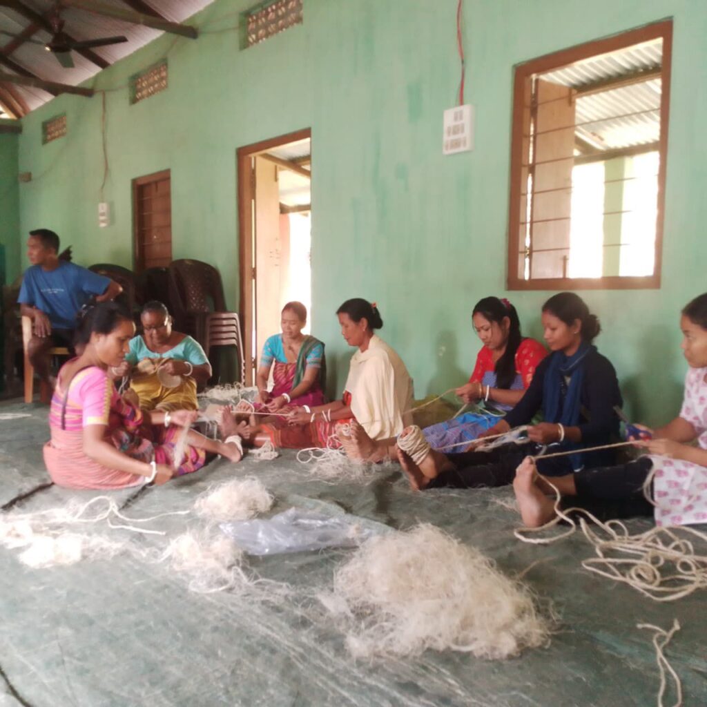 A value-addition training programme on Banana Fibre Handicraft was conducted at Rongdan Van Dhan Vikas Kendra (VDVK), Resubelpara, Meghalaya, benefitting 15 participants. The training commenced on 10th November 2025 and is currently in progress. The focus is on developing capacity in banana fibre extraction, processing techniques and in creating functional & marketable handicraft products, thereby supporting sustainable income opportunities for the participants.