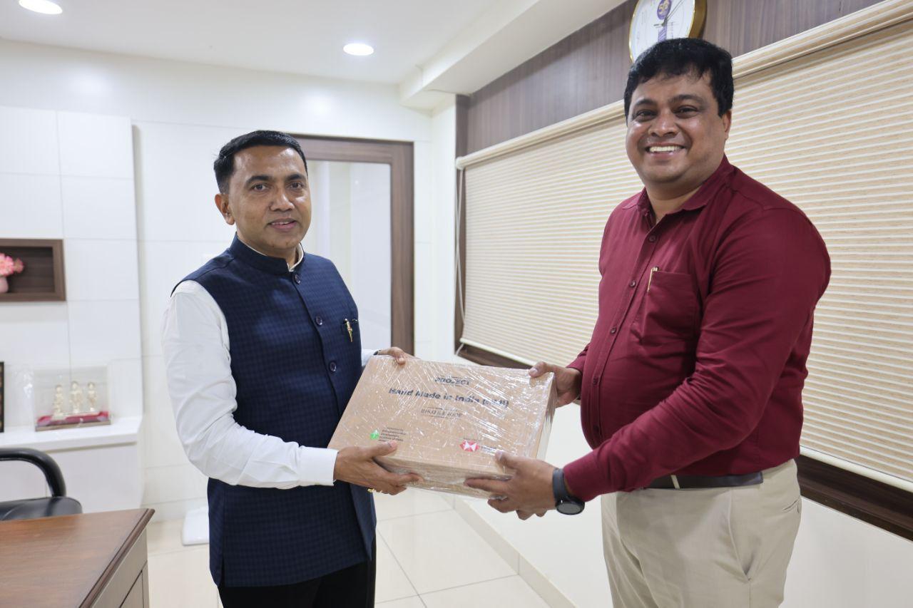 Dr. Abdul Razak, Associate Faculty, EDII & In-charge, EDII Goa Centre presenting a collection of handcrafted artifacts, developed by EDII trained artisans, to Dr. Pramod Sawant, Hon’ble Chief Minister, Goa.