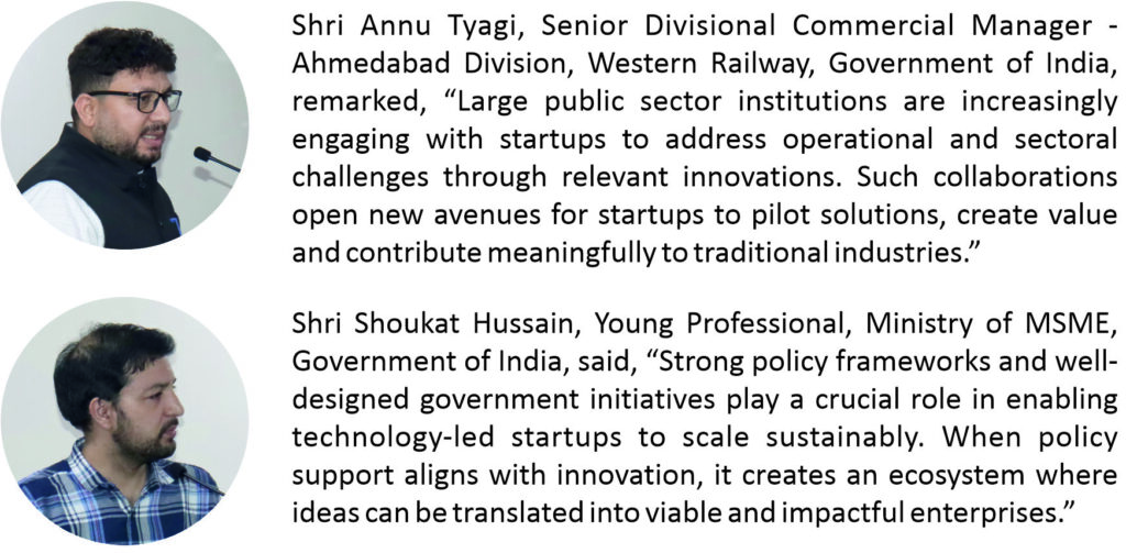 The programme was graced by Shri Annu Tyagi, Senior Divisional Commercial Manager- Ahmedabad Division, Western Railway, Government of India; Shri Shoukat Hussain, Young Professional, Ministry of MSME, Government of India; Dr. Kaushik Choudhury, Chief Executive Officer, Plasmatech Innovation Foundation and Dr. Sunil Shukla, Director General, EDII.