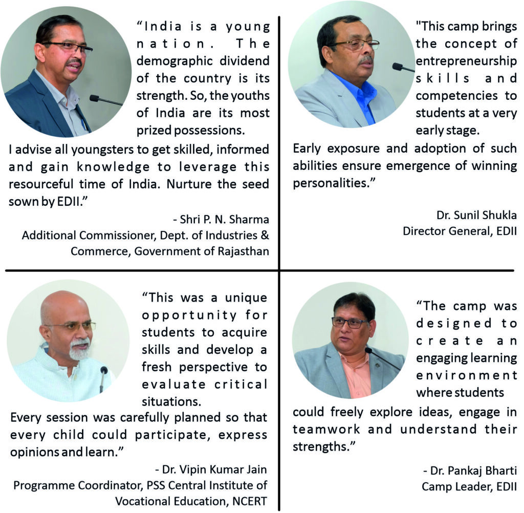 In collaboration with PSS Central Institute of Vocational Education (Bhopal), National Council of Educational Research and Training (NCERT), Government of India, EDII offered the ‘Entrepreneurial Adventures Camp’ to 78 vocational students. Ten teachers also participated as observers. This residential camp, conducted from 19 to 24 January 2026, focused on innovation, incubation, and entrepreneurship awareness. It sensitised students to entrepreneurship as a viable career pathway while equipping them with foundational competencies related to opportunity identification, innovation, teamwork, and basic business understanding.