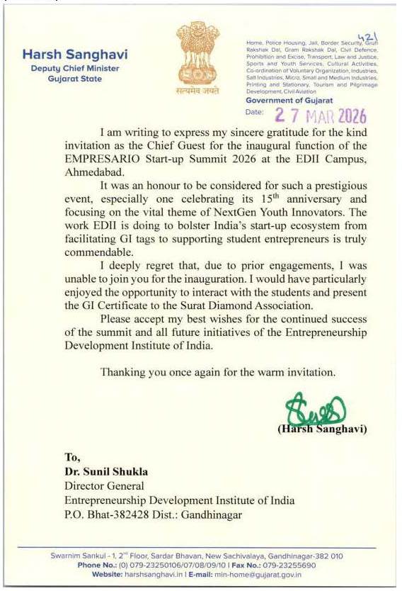 To further strengthen support for artisans and producer groups, EDII has also established a NABARD-supported Regional Geographical Indication (GI) Facilitation Centre at its campus. The Centre is first-of-its-kind in Gujarat and has been established to support artisans, producer groups and entrepreneurs across the state. The centre has generated cumulative sales of more than Rs. 3 Lakh in the last six months, enabling artisans to access better market opportunities.